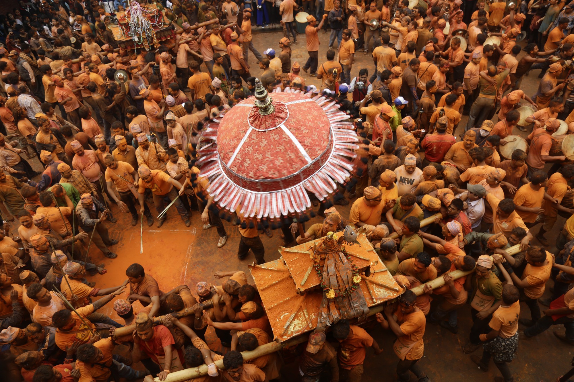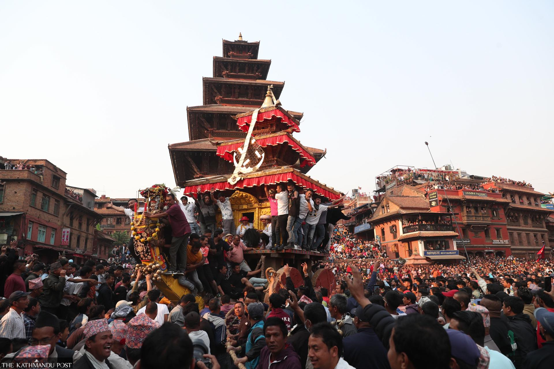 Po pietų — kelionė į Madhyapur Thimi švęsti Sindūr Džatros: